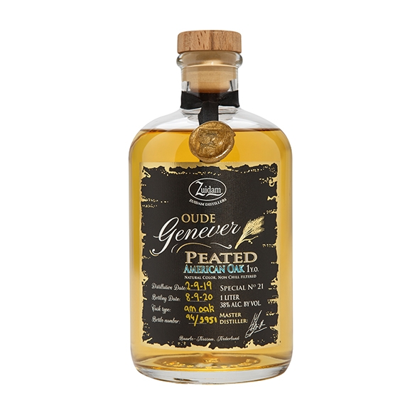 Zuidam Sepcial no #21. Een Peated Oude Genever die voor 1 jaar heeft gerijpt op Amerikaanse eiken vaten. Deze special #21 draagt de naam de Peated American Oak, en dat is hij ook. Je komt een mooie combinatie tegen van rook en vanille.